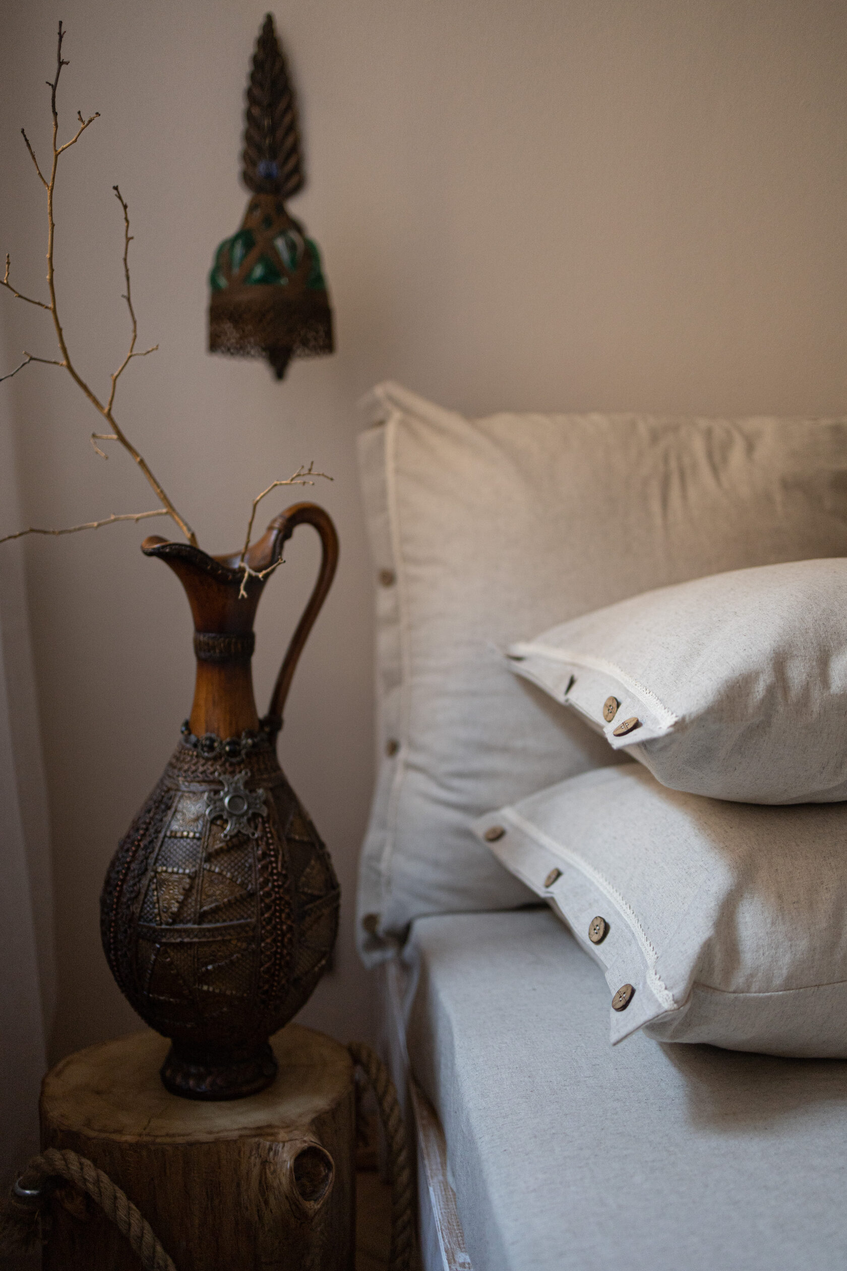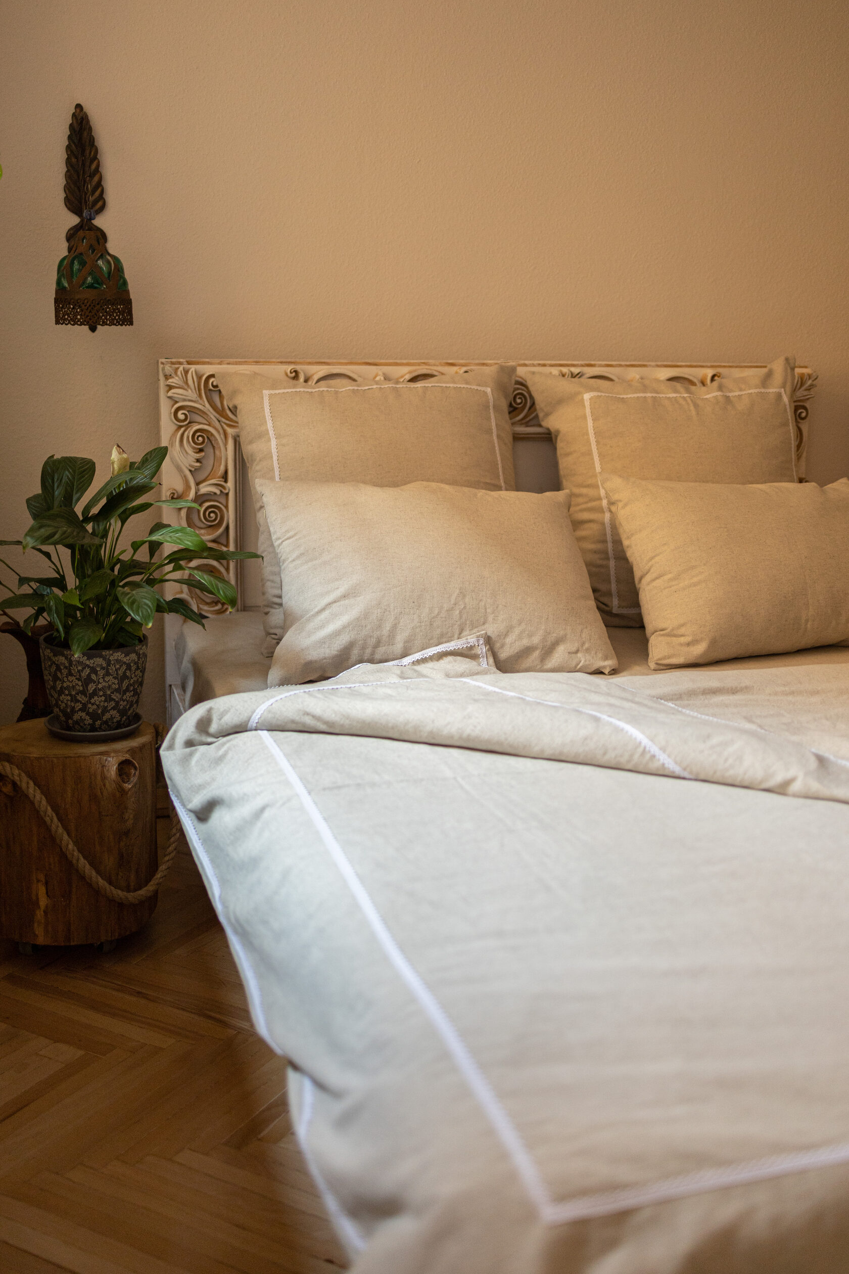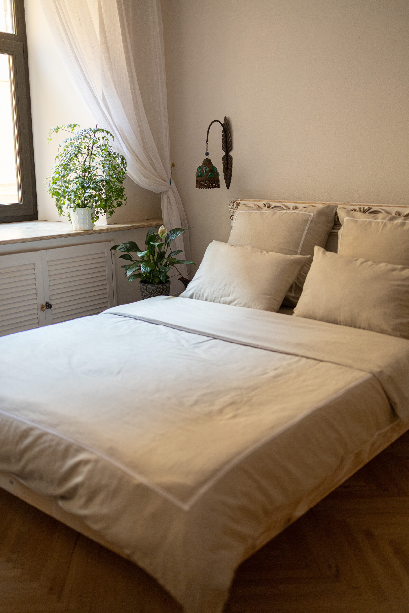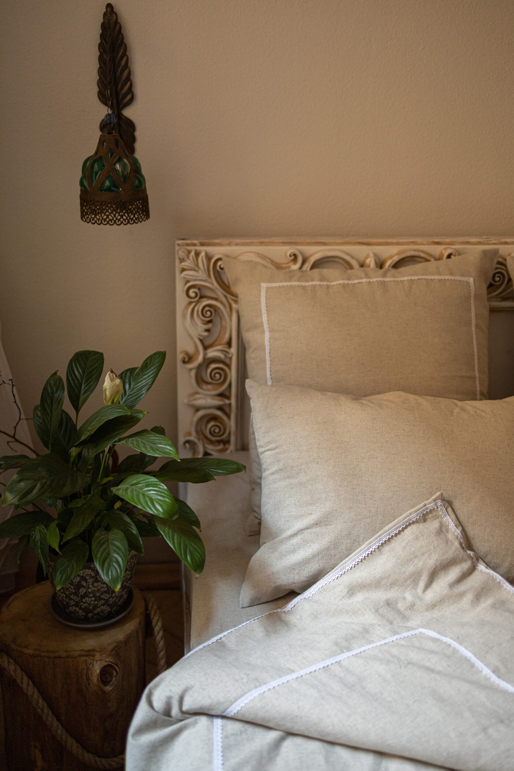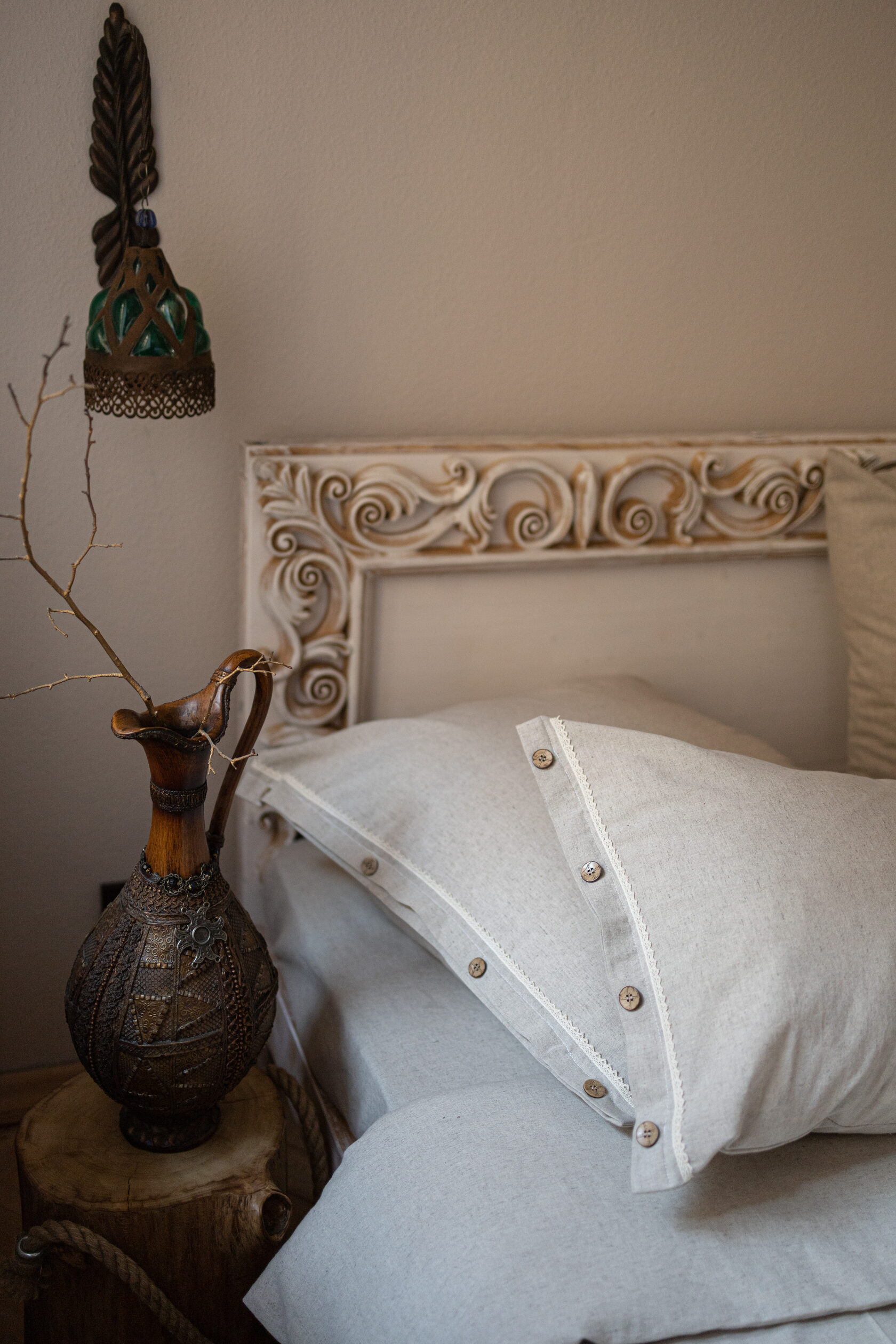 Чистый и необработанный лён - это мудрое вложение средств в предметы интерьера, которые прослужат вам годами. Это тот случай, когда ваша покупка будет приносить вам все больше удовольствия со временем. Необработанный лён - это не просто материал, который славится своей долговечностью, еще это антибактериальный эффект, улучшение микроциркуляции крови и мягкий пиллинг кожи, пока вы спите. Просим обратить внимание, что в первый месяц использования это белье может вызвать ощущение дискомфорта, необычное для нас «ванильных», но очень полезное для здоровья настоящего человека.